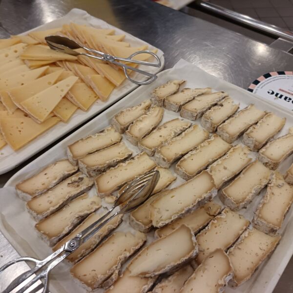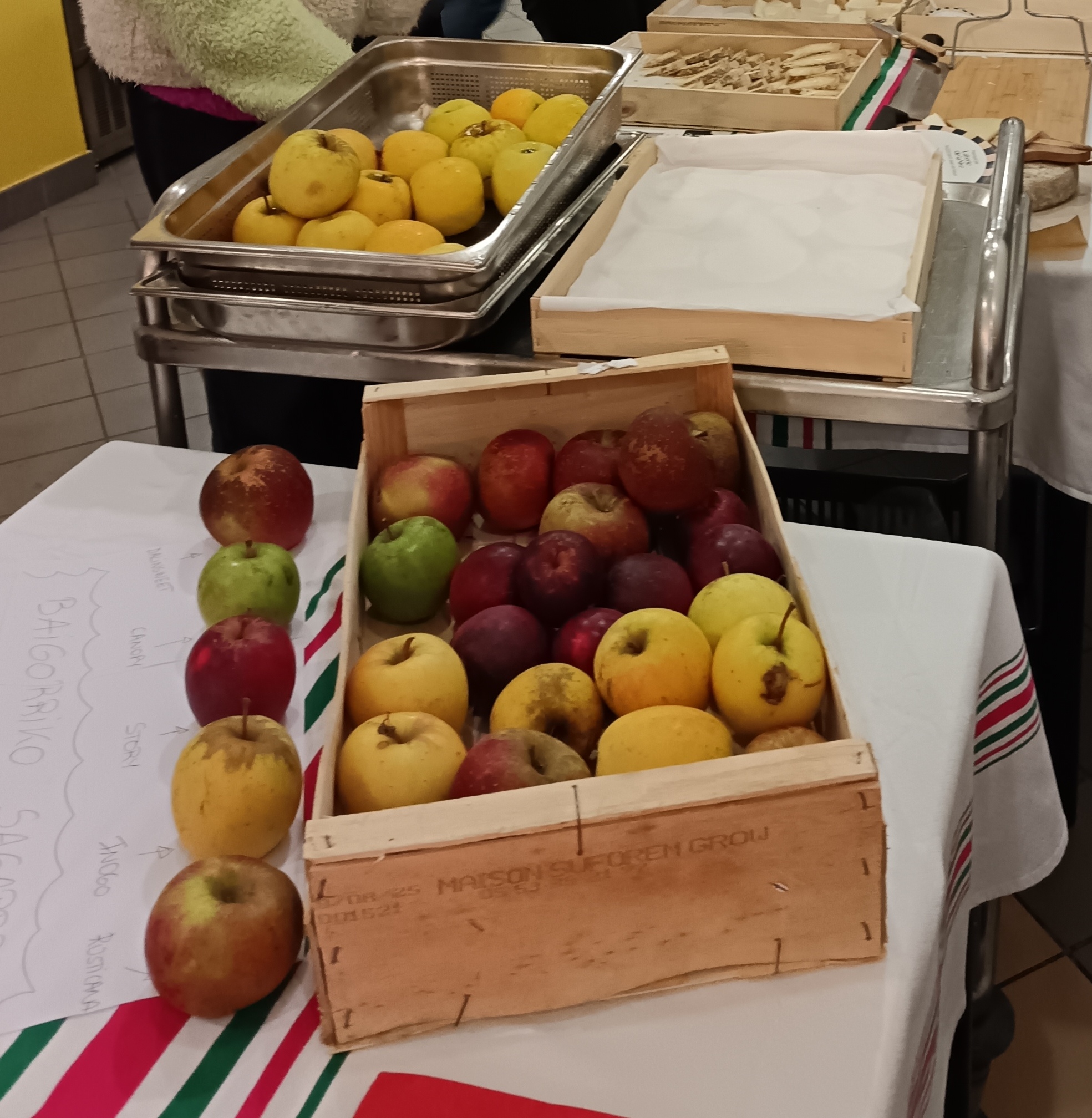 Elena Aguerre (productrice de pommes bio à Baigorry) et Camille Lauzet (laiterie de la Nive) ont investi le self du lycée fin novembre pour faire déguster leurs produits. L’objectif est ici de mettre un nom, un visage, une histoire derrière les produits servis au self du lycée. Au programme, différentes variétés de pommes locales bio (pixie, ladina, opal, canopy, inogo, rusticana) et des fromages artisanaux 100 % lait de brebis fabriqués à partir du lait de producteurs locaux.