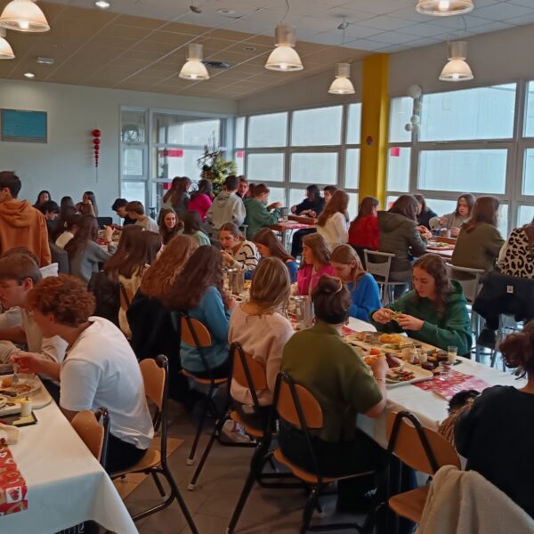 Décoration de noël, nappage des nappes, viande locale coopérative Axuria, poisson frais, fromage local, ardoise de desserts: l’équipe cuisine du lycée en lien avec le service général préparait cet instant festif depuis plusieurs jours. Un même objectif : faire plaisir aux élèves et offrir un temps convivial à tous nos convives. Sourires et remerciements étaient au rendez vous! Un grand merci à tous.